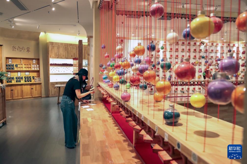 5月10日,游客在敦煌文旅新打卡地敦煌印局体验文创印章。