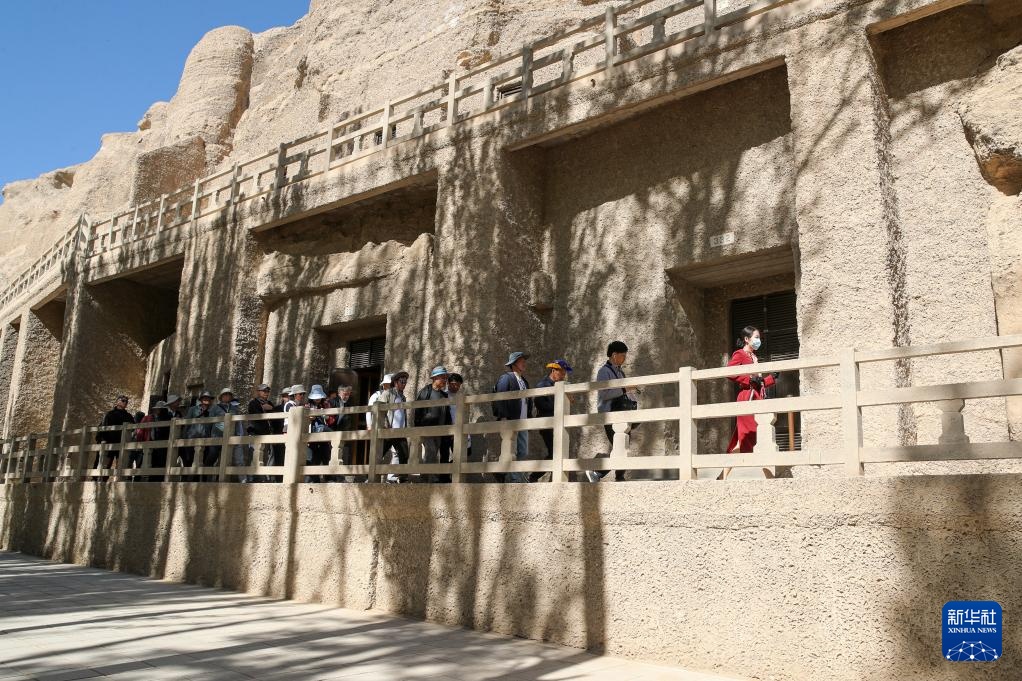 5月10日,韩国游客团在莫高窟参观游览。